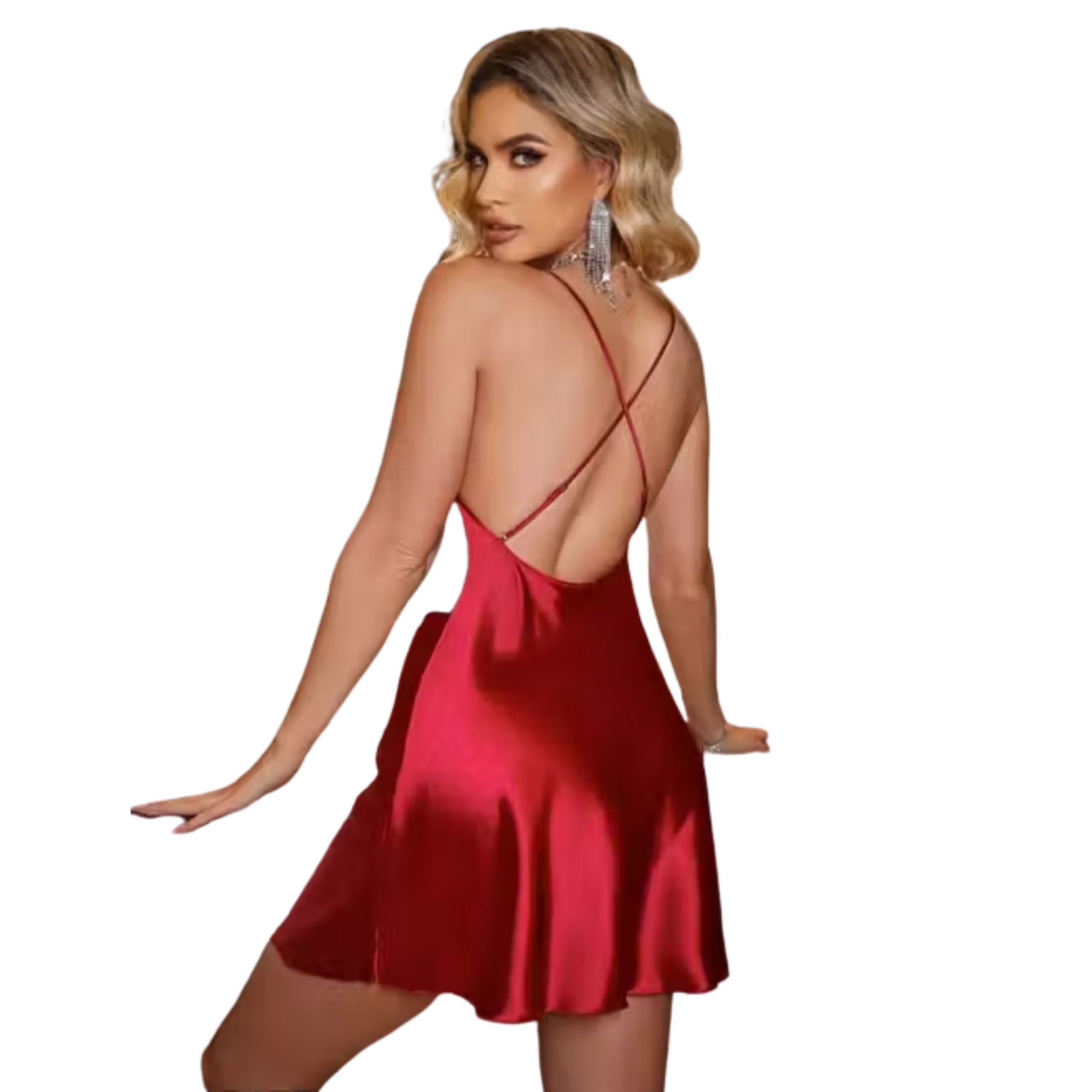 The plunging V-neckline is framed by scalloped eyelash lace edges, while the open-back design is accented by ultra-thin crisscross straps that are fully adjustable for a personalized fit. Whether you are looking for a luxurious addition to your sleepwear collection or a striking piece for a special evening, this chemise prioritizes both high-end aesthetic and physical comfort. The high-sheen fabric catches the light with every movement, ensuring a look that is as smooth to the touch as it is captivating to the eye.