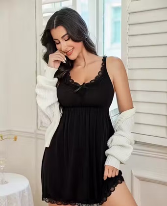• The Details: The hemline is finished with a matching lace border, adding a touch of romantic detail to the minimalist aesthetic. Wide, comfortable straps and a flexible, gathered bust ensure a perfect fit for a variety of body types.